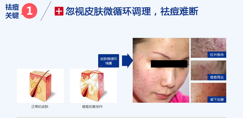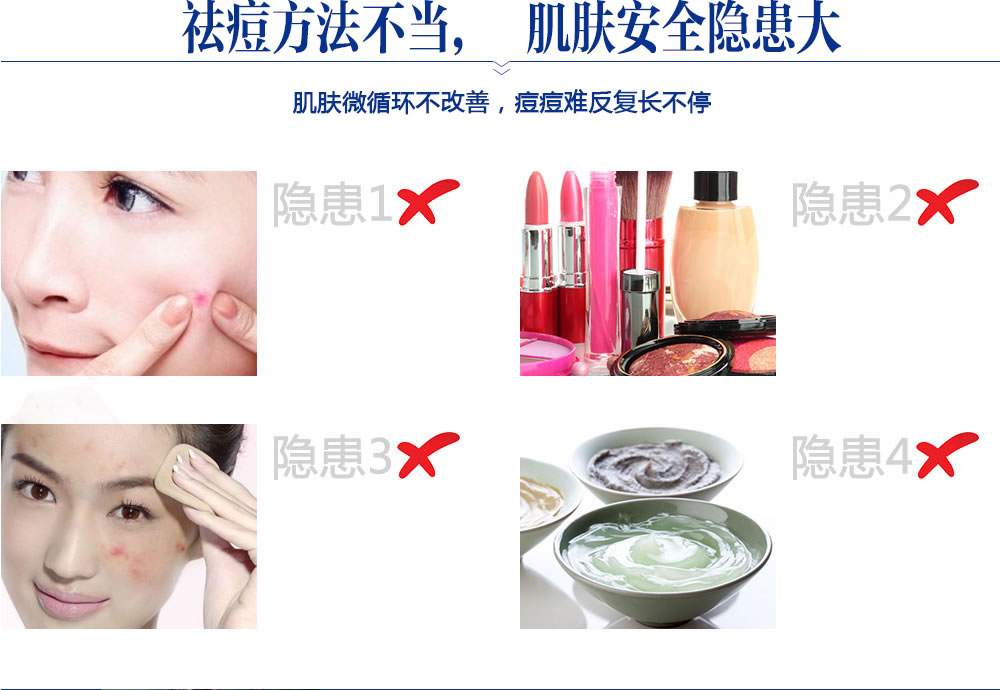 常規祛痘先去痘再祛印,祛痘過程忽視皮膚微循環損傷,造成2次修復,拉長肌膚愈合周期,留下痘痘再生和炎性瘢痕后患!